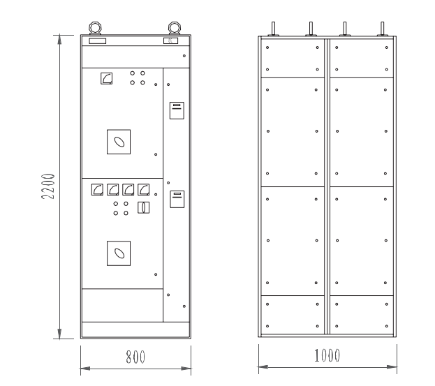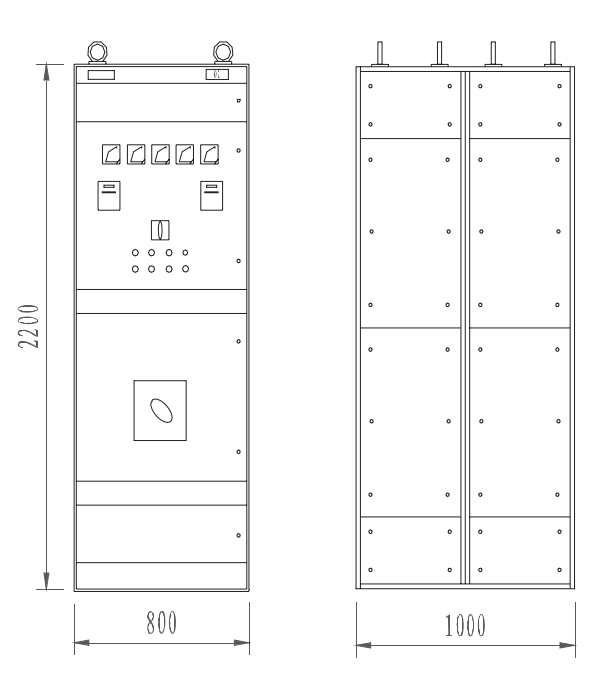 4 ।1 उत्पाद की कुल ऊंचाई 2200 मिमी है, शीर्ष बसबार है, मध्य भाग विद्युत घटकों की स्थापना की ऊंचाई है, उच्चतम 1800 मिमी है, और फिक्सिंग योजना के निचले भाग को 200 मिमी द्वारा घटाया जाना चाहिए, अधिकतम 1600 मिमी है (1800 मिमी दी गई योजना को छोड़कर)।