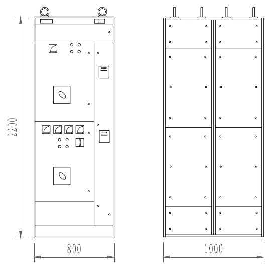 4 ।3 कैबिनेटों की गहराई 800 मिमी है, लेकिन जब ऊपरी और आउटगोइंग लाइनें सभी 1000 मिमी हैं, तो आने वाले कैबिनेटों को छोड़कर।