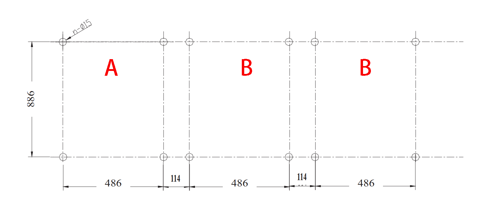 चित्र 5 स्ट्रिंग कैबिनेट का स्थापना आकार ए: इनलेट कैबिनेट बी: फीडर कैबिनेट