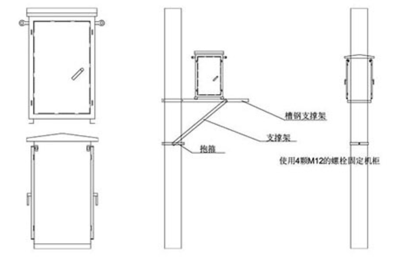 दो ध्रुवों के बाहर दो चैनल बार को हॉप के साथ स्थापित करें, और फिर चैनल पर उपकरणों के नीचे स्थापित करने के लिए 4 M12 शिकंजा का उपयोग करें
