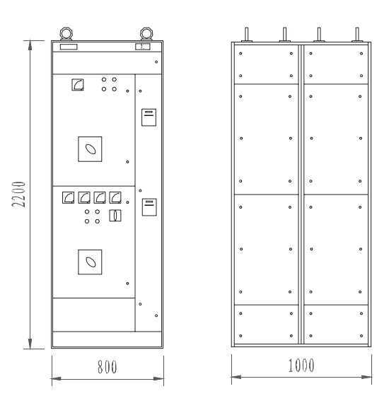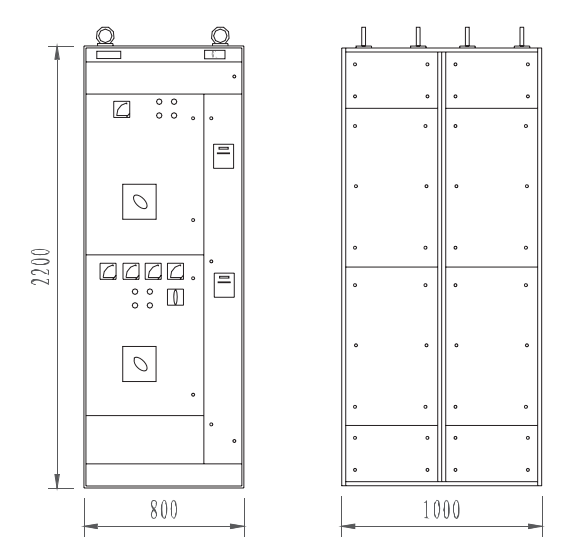 | चित्र 1 बसबार कैबिनेट और इनलेट कैबिनेट] प्रकार रूपरेखा आकार |